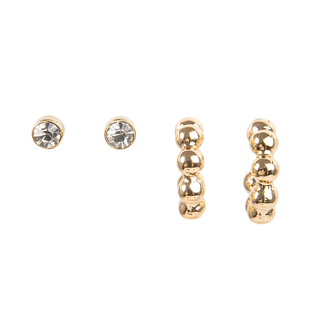 BALL HOOP HUGGIE EARRINGS SET GOLD