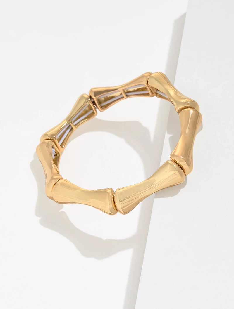 Our beautifully crafted bamboo-inspired bracelet. Strung on an easy-on, easy-off stretch band. Perfect for adding a little glow to your wrist.