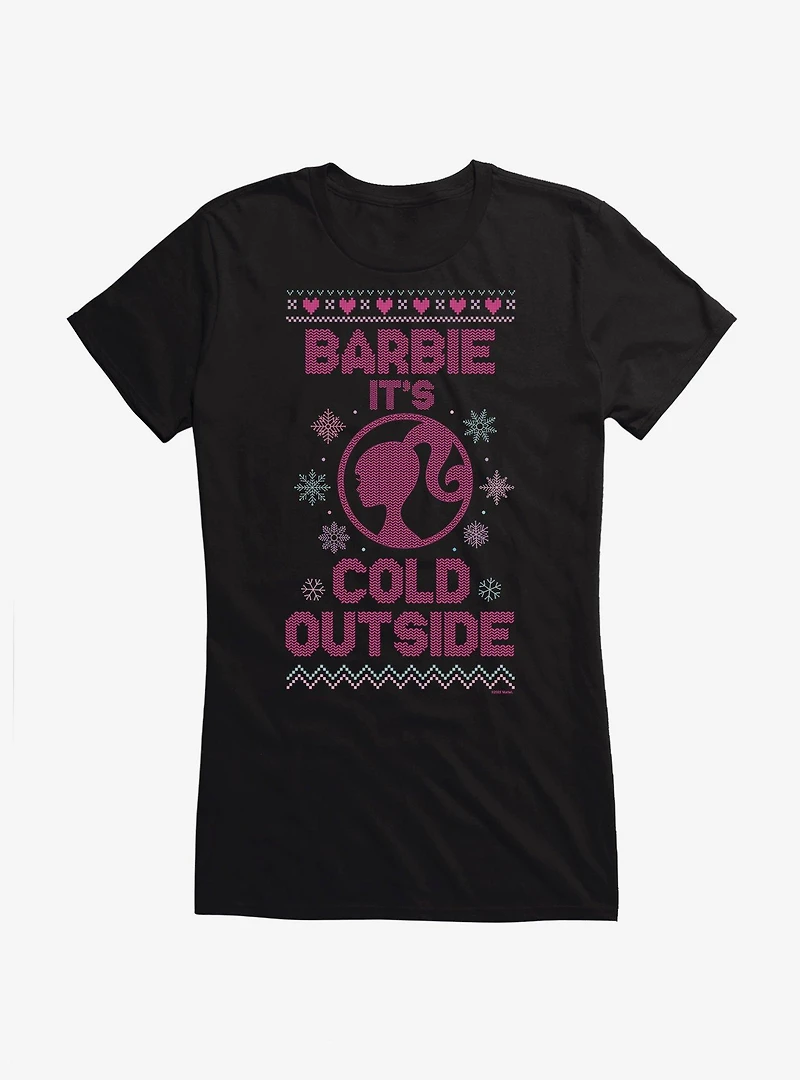Barbie It's Cold Outside Ugly Christmas Pattern Girls T-Shirt