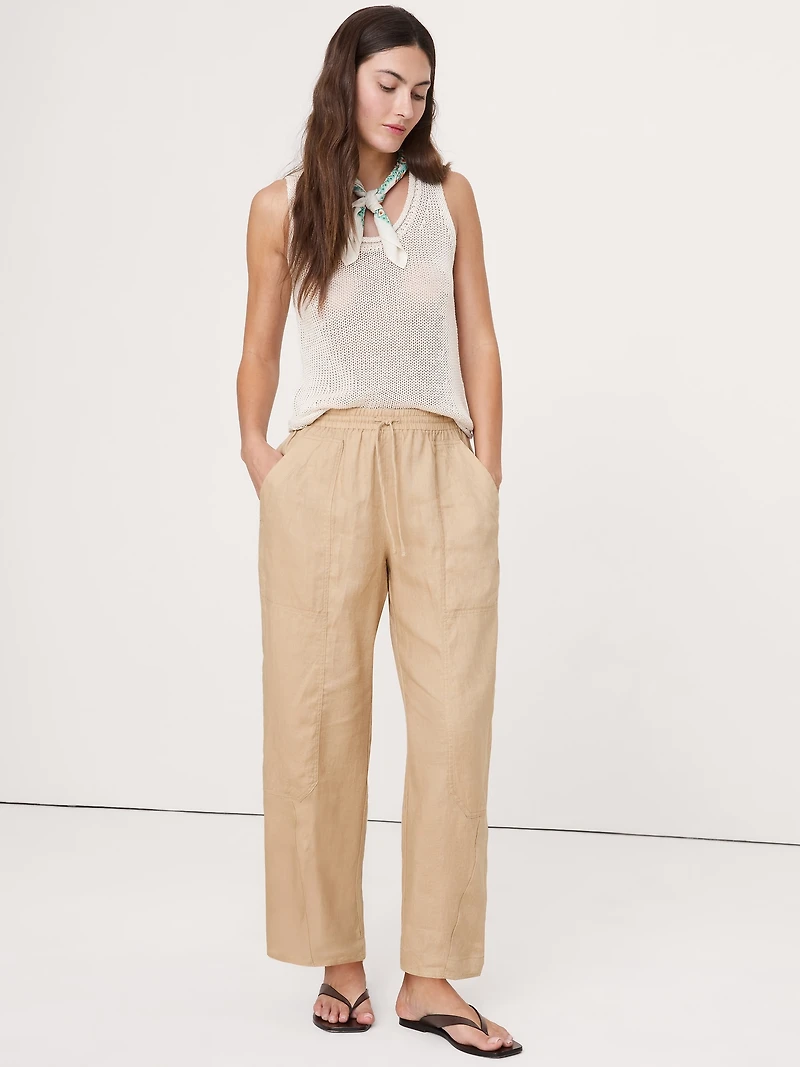 Barrel-Leg Linen Pull-On Pant