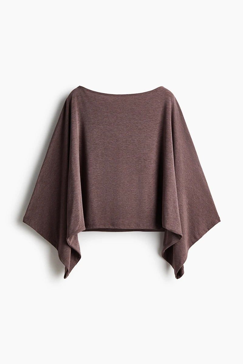 Short, loose-fit top in jersey. Boat neck and 3/4-length batwing sleeves.