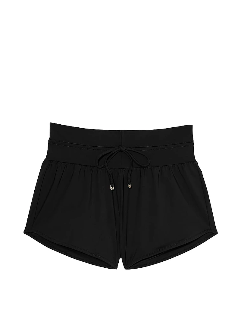 Crafted in water-ready swim fabric, this versatile, comfy pair is just the thing to pop over swimwear for added coverage when you want it. The high-waist design is finished with an adjustable drawstring.