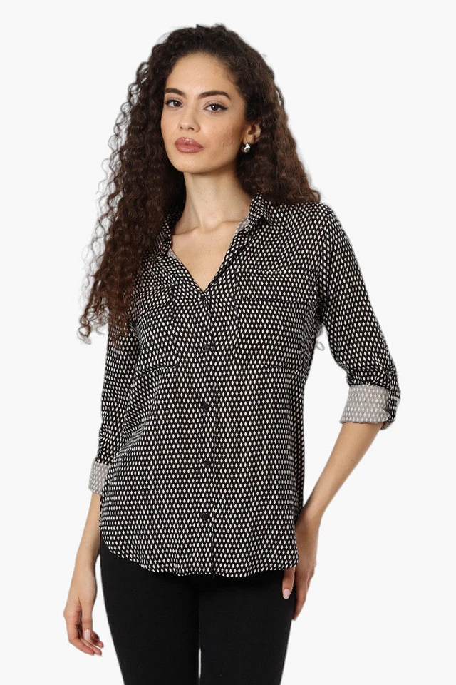 International INC Company Patterned Roll Up Sleeve Blouse