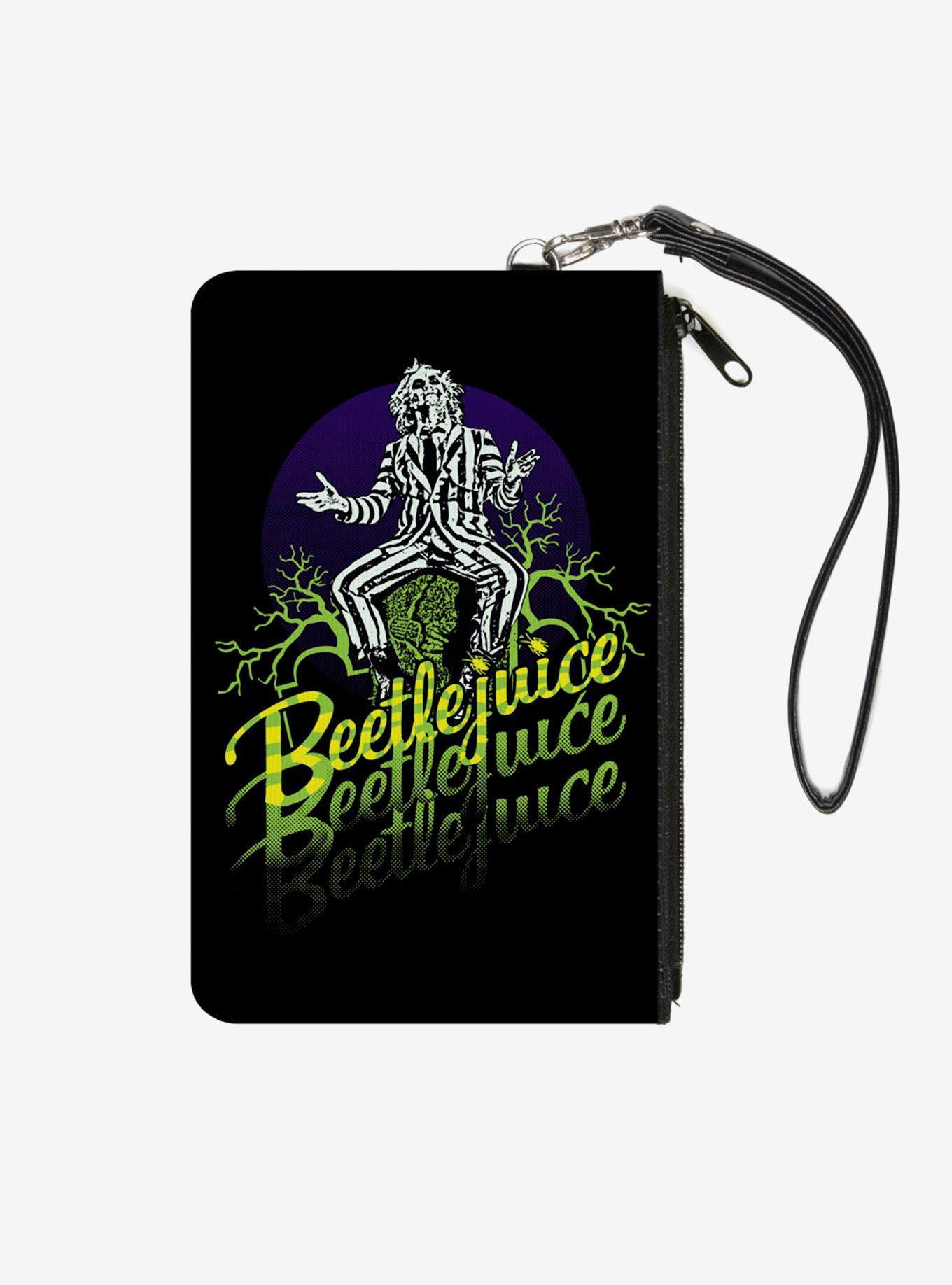 Beetlejuice Sitting on Tombstone Pose Zip Clutch Canvas Wallet