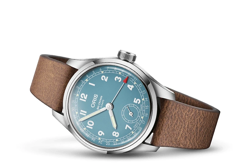The classic Big Crown Calibre 473 is a milestone watch. Its five-day, hand-wound calibre is the 10th calibre we've created in-house over 10 years, an achievement only made possible by our independence and innovative spirit. This model retains the oversized crown and pointer date function of the original Big Crown watches. It features a new a new in-house developed hand-wound movement, Calibre 473, a 38mm stainless steel case, a lagoon blue dial, and a sustainable deer leather strap.