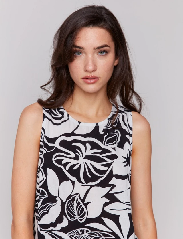 Black & White Abstract Print Sleeveless Top with Back Keyhole by Charlie B