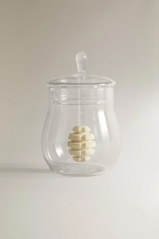 BOROSILICATE GLASS AND WOOD HONEY JAR