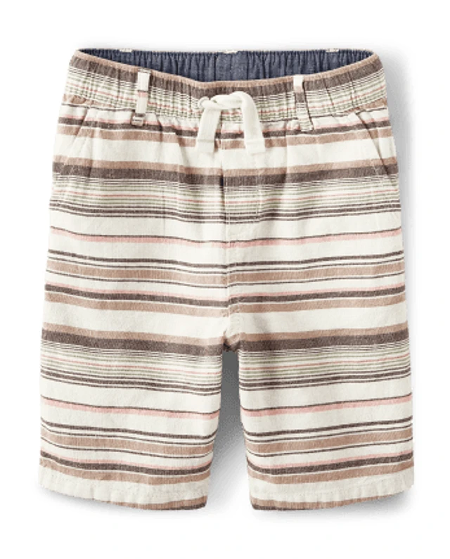Boys Striped Linen-Blend Pull On Jogger Shorts