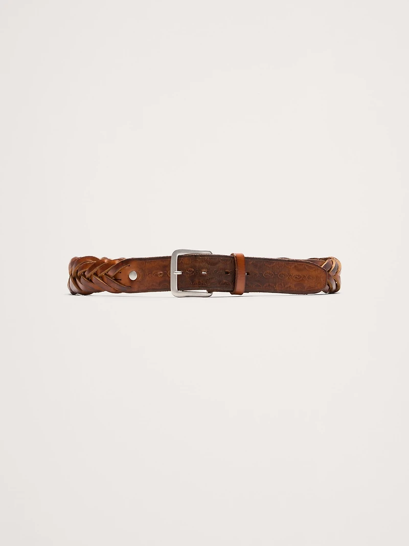 A nod to styles of the Southwest, this braided leather belt has embossed details and a weathered finish so it looks and feels as good as vintage.