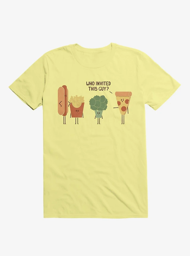 Broccoli Junk Food Party Crasher Corn Silk Yellow T-Shirt