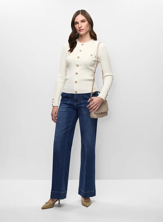 International INC Company Boat Neck Button Detail Pullover Sweater