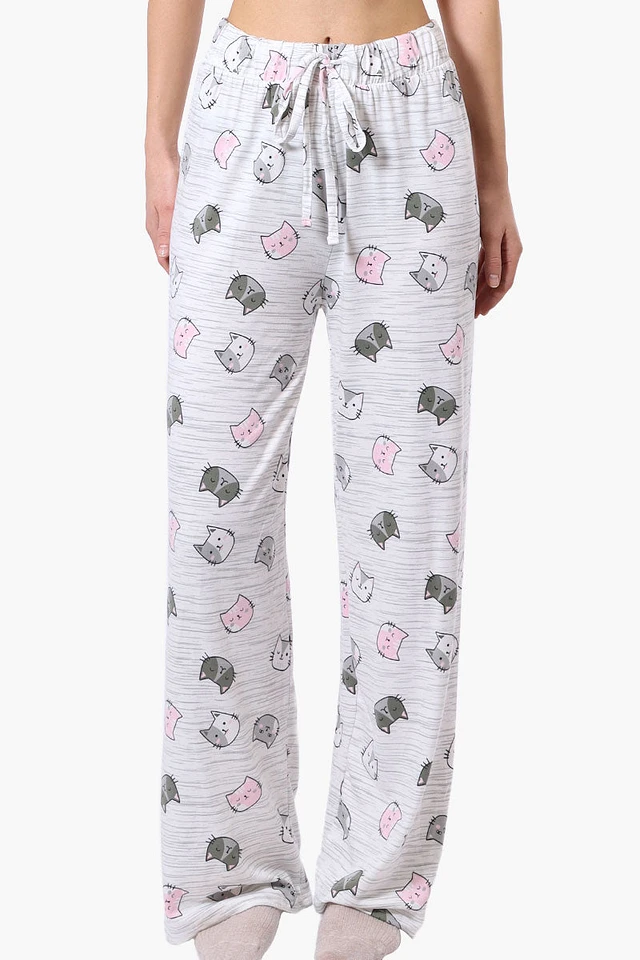 Canada Weather Gear Cat Pattern Wide Leg Pajama Pants - White