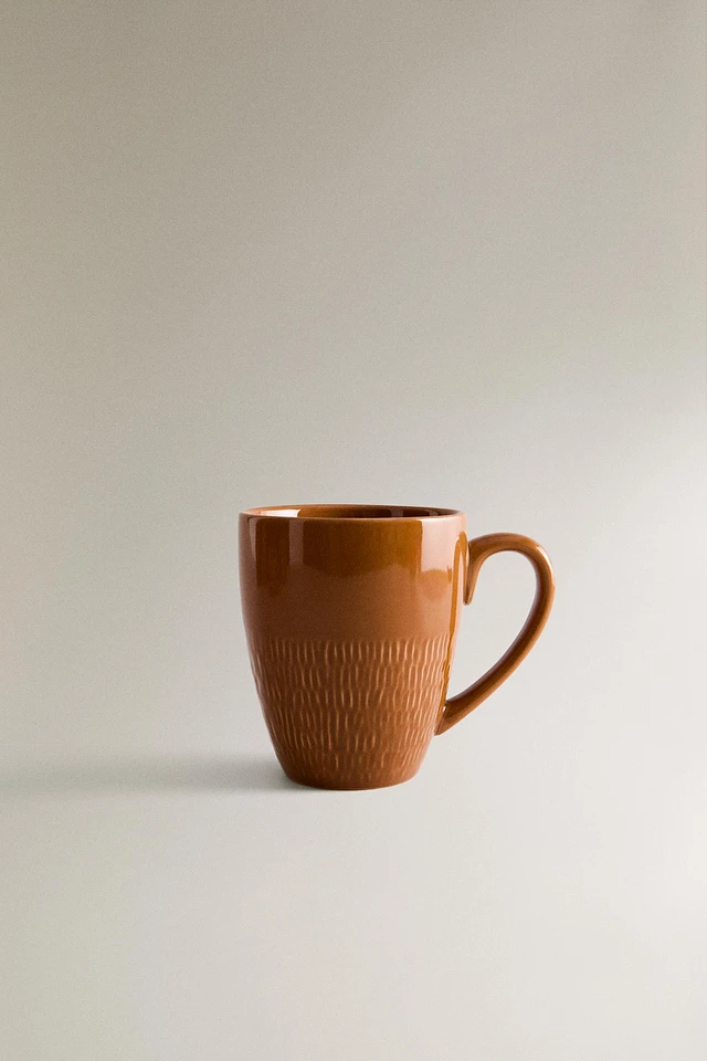 STONEWARE MUG WITH RAISED BORDER DESIGN