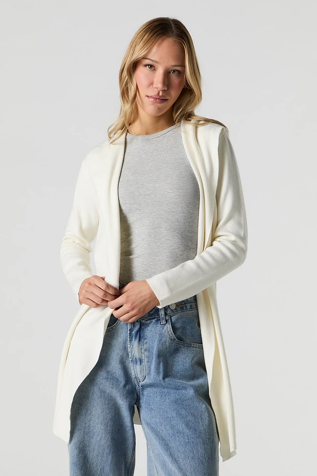 Flowy Draped-Front Textured Jacquard Print Cardigan with Long Sleeves by Perle