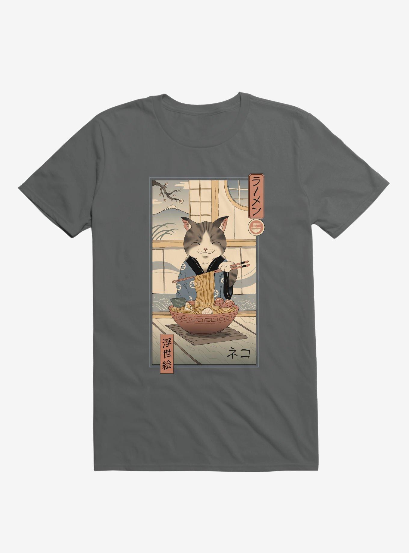 Cat Neko Ramen Ukiyo-E Charcoal Grey T-Shirt