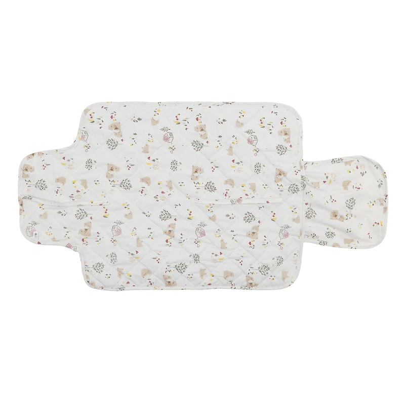 This portable baby changing pad Canada parents love turns every diaper change into a calm, organized moment. The softly quilted cotton is gentle on your baby’s skin, while the fold-up design slips easily into any diaper bag. A sweet woodland bear print, tiny houses, and scattered leaves create a cozy storybook feel that brings a touch of warmth to on-the-go routines. Inside, a practical elasticized pocket keeps diapers and wipes close at hand, making it a true Perlimpinpin fold-up change pad essential for busy days. Designed in Canada by parents who understand real-life messes, this quilted travel changing pad for baby offers reassuring comfort on any surface. Use it as a fold up change pad for diaper bag outings, visits with family, or simply to keep your home changing station neat and ready.