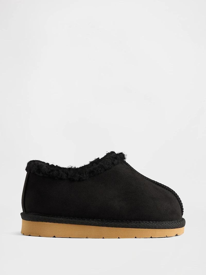 Tige en suède végane et doublure douillette en sherpa. Semelle antidérapante en caoutchouc. Ce produit a été fabriqué dans une usine qui investit dans l’égalité des genres et l’autonomisation des femmes grâce au programme Reimagining Industry to Support Equality (RISE). Pour en savoir plus.: gapinc. com/fr-ca/impact/bridging-the-equity-gap