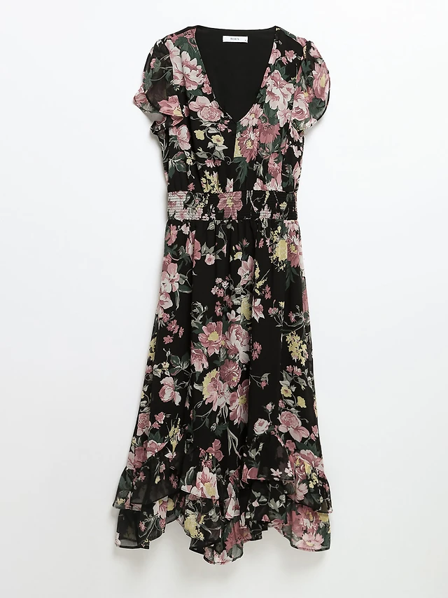 Vintage Blossom Chiffon Ruffled Maxi Dress