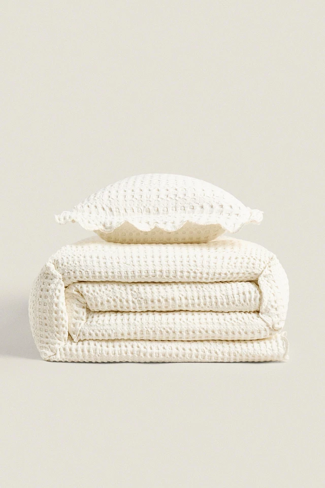 MINI WAFFLE-KNIT COTTON BEDSPREAD