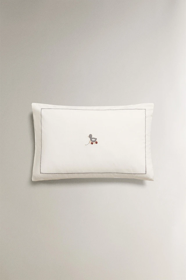 CHILDREN'S EMBROIDERED PILLOWCASE WITH TRIM DETAIL