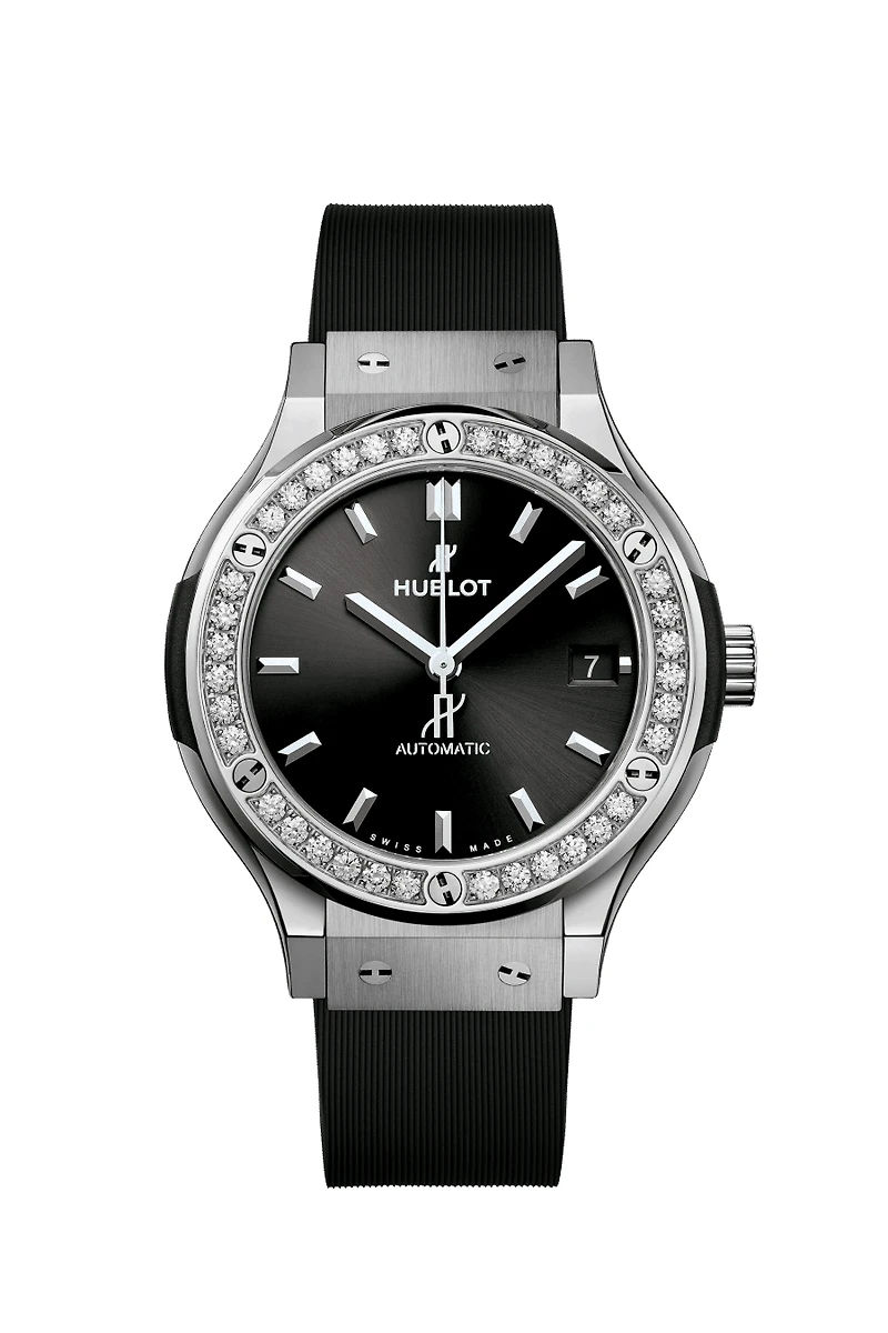 Discover the Classic Fusion Titanium Diamonds in 38 mm with Rubber strap