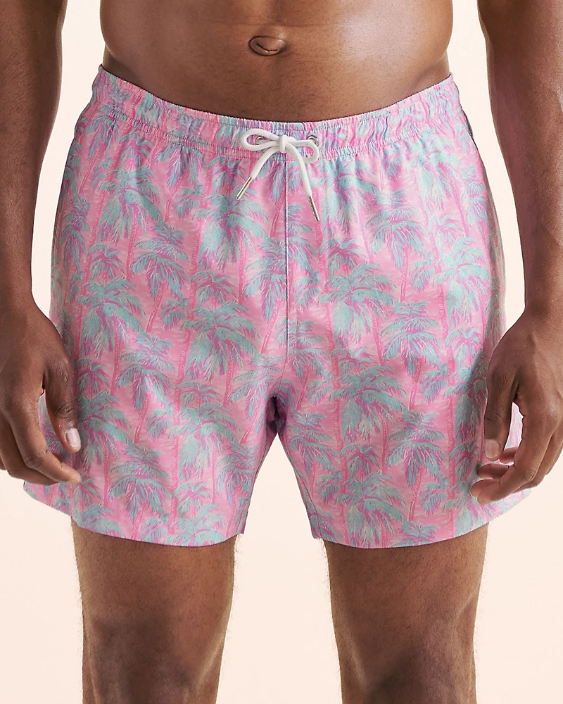 Add this volley swimsuit to your suitcase for a stylish vacation! This pink and blue tropical-print swim short is the perfect choice, with its built-in mesh liner and elastic waistband ensuring optimal comfort.