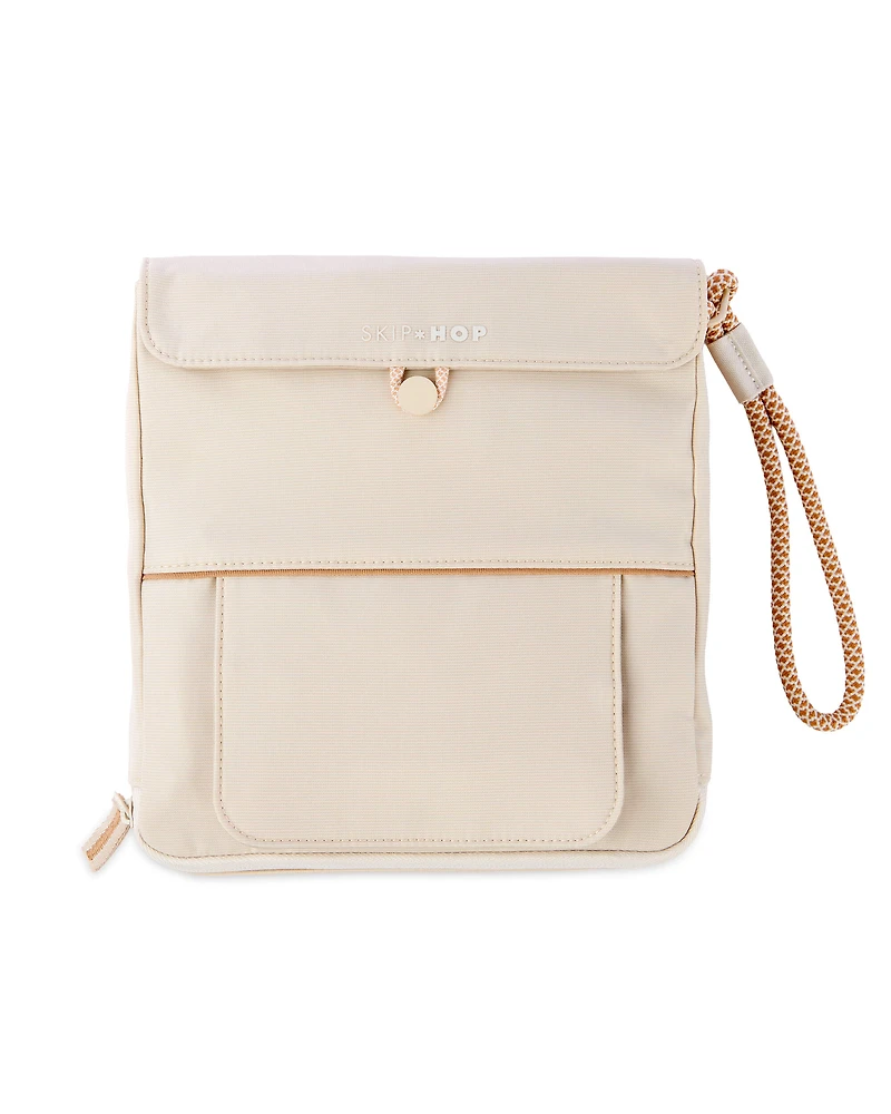 Meet the all-in-one diaper changing solution for on-the-go! Designed to cover public changing stations, the extra-large changing mat wipes clean and easily folds into the portable changing station for next time. Handy details including an easy-access wipes pocket, disposable bag dispenser and storage space for diapers and essentials makes this foldable changing mat and clutch a must-have for travel, shopping and more.