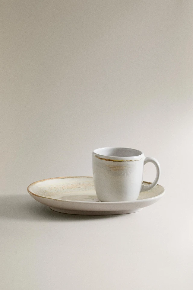 COFFEE CUP AND PORCELAIN SAUCER WITH RAISED DESIGN