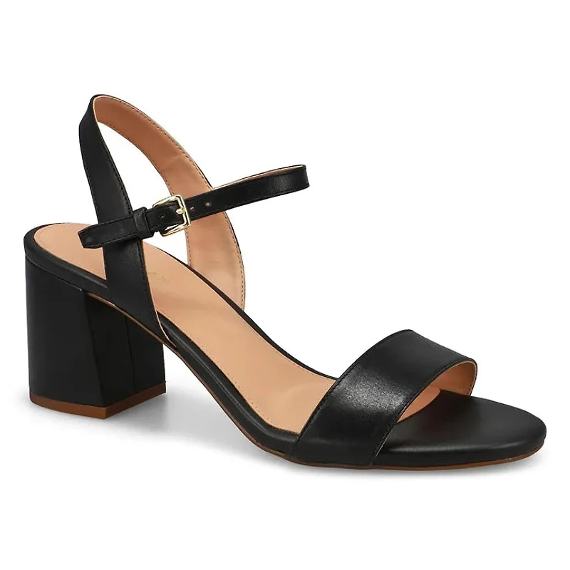 Polish off dressy looks with the Josie Block Heel black sandal from Cole Haan. Featuring premium leather uppers and comfortable block heel, this classic style is finished with an adjustable ankle strap for a secure fit. Featuring Cole Haan's luxurious GRANDFØAM cushioning technology for an all day absolute cushioning experience. Features & Benefits Premium leather upper PU sock lining with GRANDFØAM technology Adjustable ankle strap for secure fit Synthetic outsole, made with 32% recycled rubber content Approx..2.5 inch heel Cole Haan leather products support responsible manufacturing via the Leather