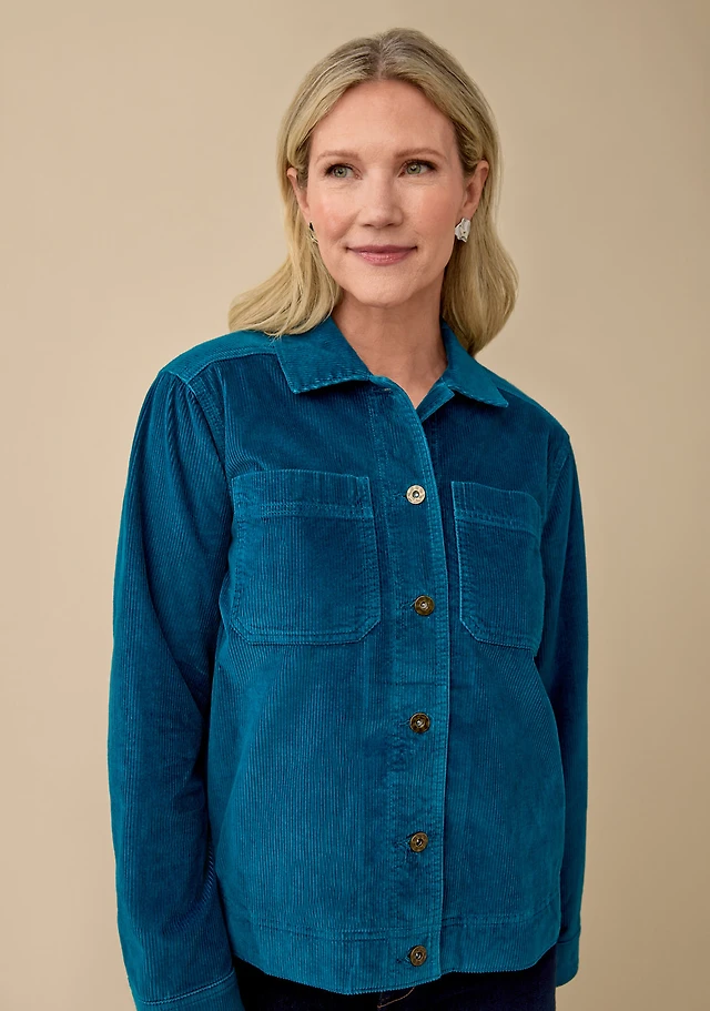 Short lightweight water-repellent puffer jacket with corduroy detail