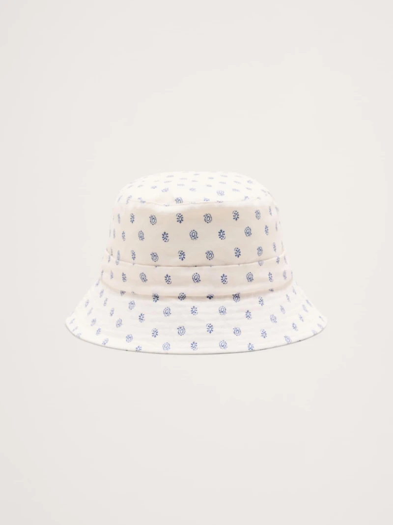 An easy cotton bucket hat with tie detailing and a soft, lived in handfeel.