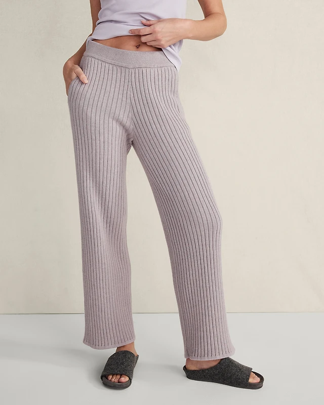 Organic Cotton Rib Knit Relaxed Wide Leg Pants