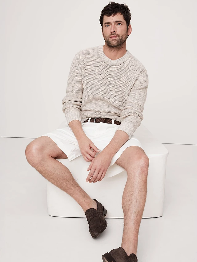 Cotton-Linen Blend Crew-Neck Sweater