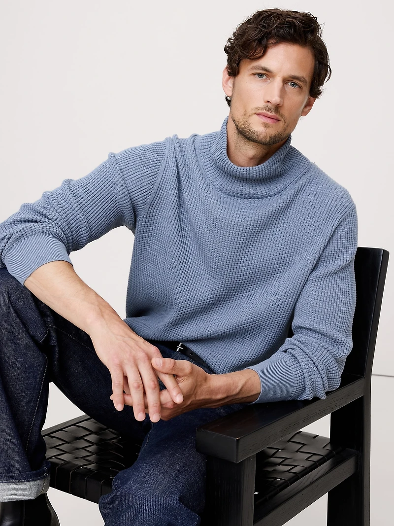 Cotton Thermal-Knit Turtleneck Sweater in Ottawa, ON