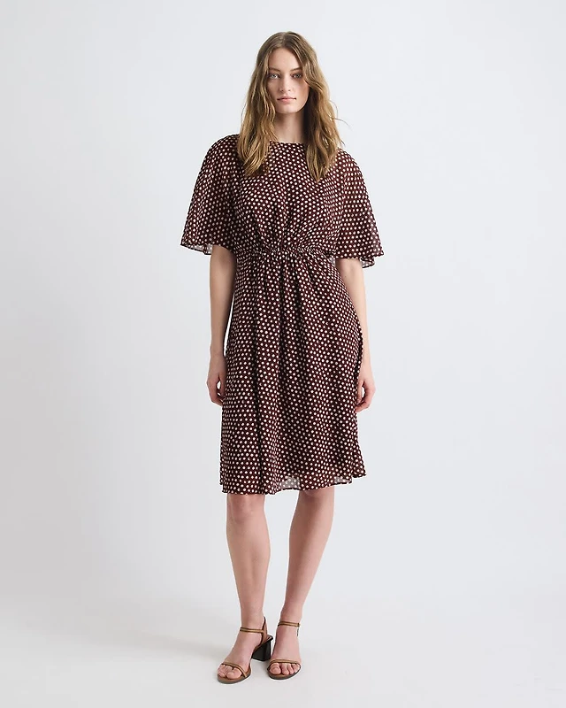 Crew-Neck Chiffon Midi Dress with Short Flutter Sleeves