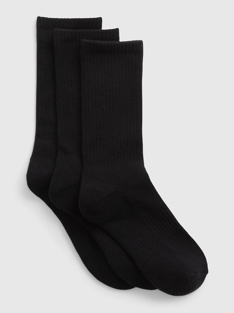 Soft knit crew socks. Ribbing at top. Reinforced toe and heel. This product was made in a factory that invests in gender equality and women’s empowerment. Through RISE (Reimagining Industry to Support Equality) and Gap Inc. ’s program P. A. C. E. (Personal Advancement & Career Enhancement), we support people who make our clothes to build the skills, knowledge, confidence, and resilience needed to advance in work and life. .Learn more.here.