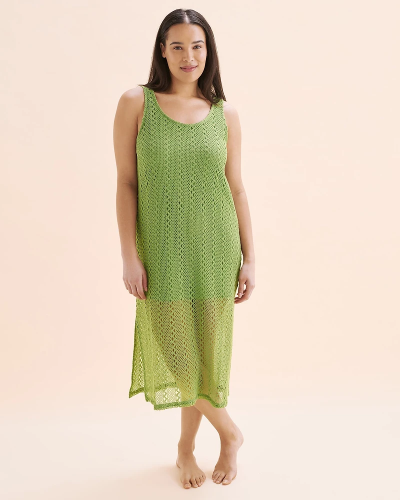 This long crochet dress is a true ode to femininity. Its soft jersey lining provides subtle opacity, while the side slits allow you to move with ease. The delicate sheer detail at the hem adds an airy touch. In black, this piece invites you to embrace a timeless look.