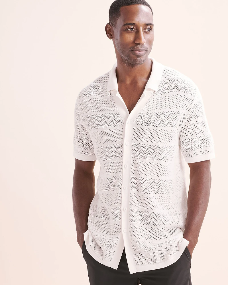 This beige crochet shirt has a natural and elegant style. Pair it with white shorts for a seaside look or with raw denim for a chic, casual vibe.