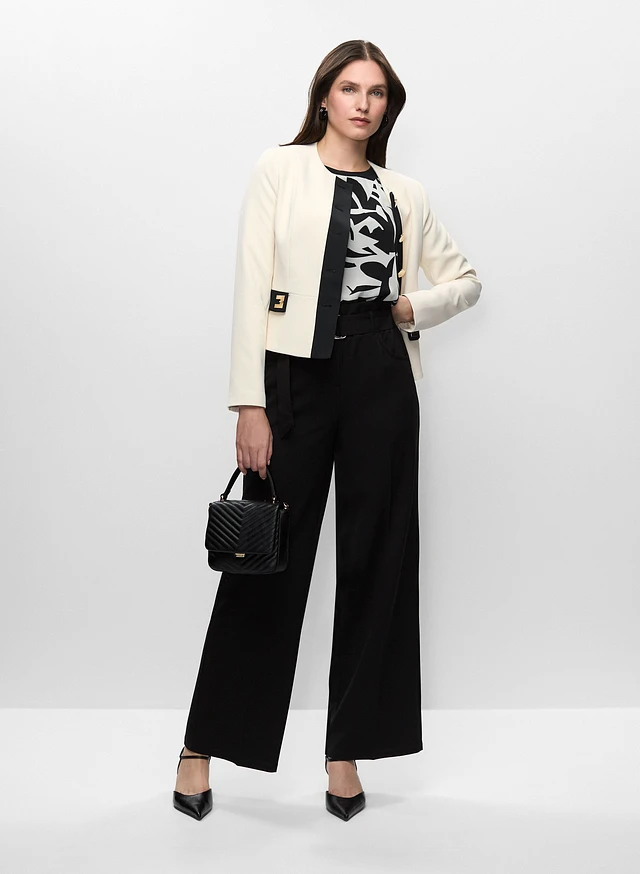 Cropped Colour Block Jacket & Belted Wide Leg Pants