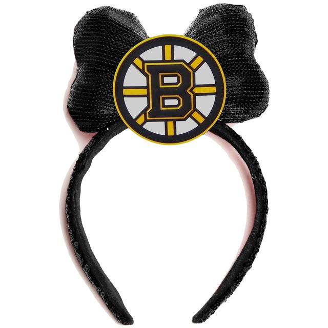 Women's Cuce Black Boston Bruins Sequin Cropped Pullover Hoodie