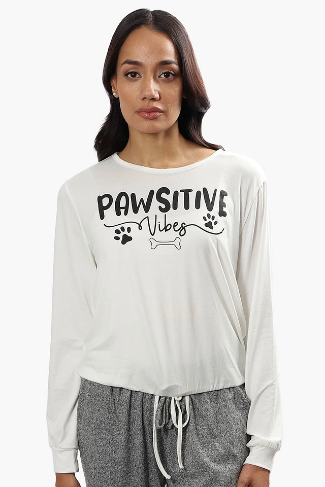Cuddly Canuckies Pawsitive Vibes Print Pajama Top - White