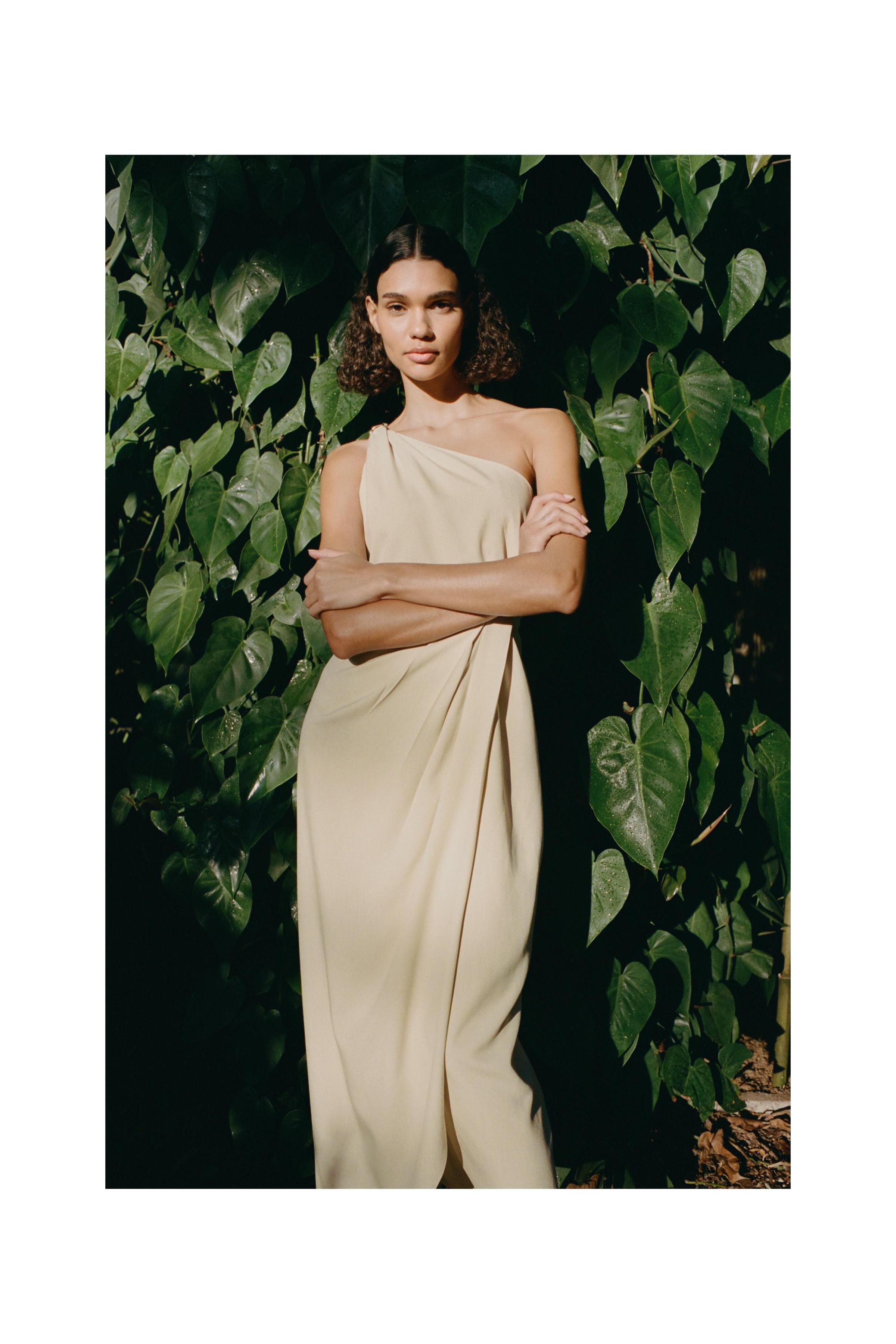ASYMMETRIC CUT OUT LINEN MIDI DRESS
