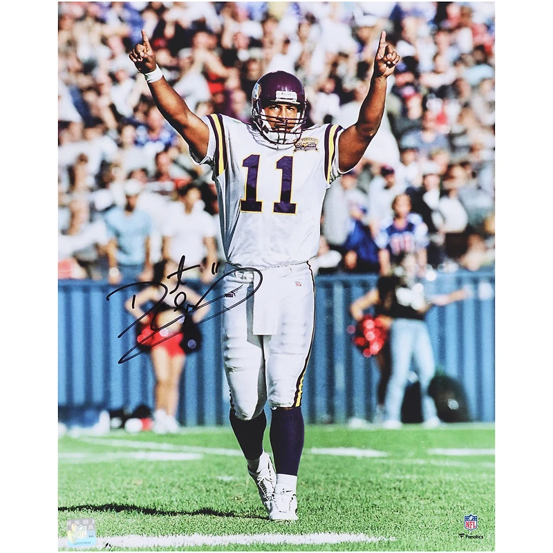 Elevate your collection of Minnesota Vikings memorabilia with this Daunte Culpepper autographed 16" x 20" Hands Up in White Jersey Photograph. It features an eye-catching image of the legendary quarterback and his distinct signature. Additionally, this collectible photo includes an individually numbered, tamper-evident hologram that can be verified online to certify authenticity.