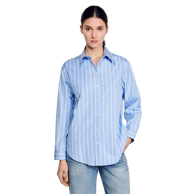 Davie Back-Cutout Pinstriped Poplin Shirt