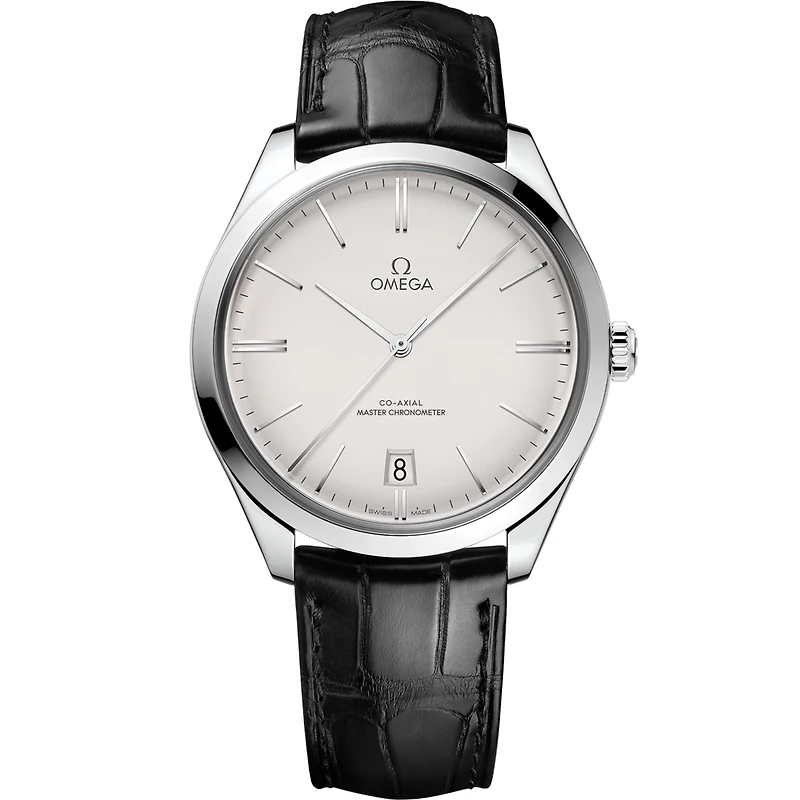 Characterised by its thin and elegant case, the Trésor line was first launched by OMEGA in 1949 and housed the legendary 30mm calibre. More than half a century later, it continues to impress with one of today’s most advanced mechanical movements. This model has a 40 mm stainless steel case, which is presented on a black leather strap. The domed opaline silvery dial includes a date window at 6 o'clock as well as hands and indexes in 18K white gold. Inside, this De Ville Trésor is powered by the OMEGA Co-Axial Master Chronometer Calibre 8910 and is certified at the industry’s highest standard of precision, chronometric performance and magnetic resistance.