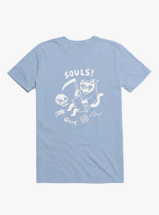 Dancing Skeleton With A Cat Light Blue T-Shirt