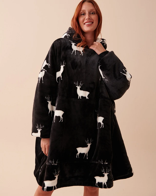 Deer Print Soft Plush Oversized Hoodie