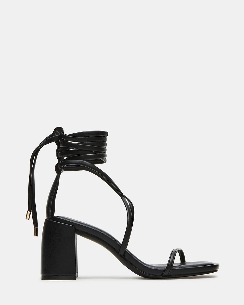Introducing DEMURE, the stylish and comfortable strappy square-toe heel. Enjoy the stability of a block heel and the added flair of a lace-up design. Elevate your look with this must-have shoe.