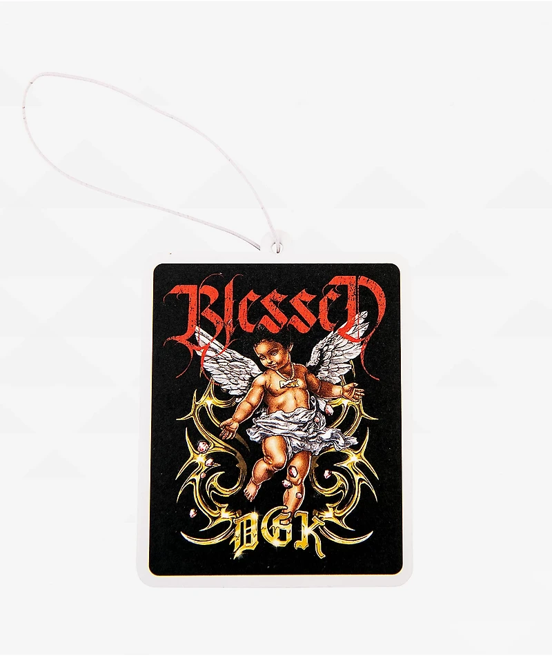 Personalize your desk, car, or home with the Castles air freshener from Dirty Ghetto Kids, landing in a black color with edgy, blessed graphics printed on both sides. Adding a coconut scent anywhere, the skate decor shows a cherub wearing a DGK chain