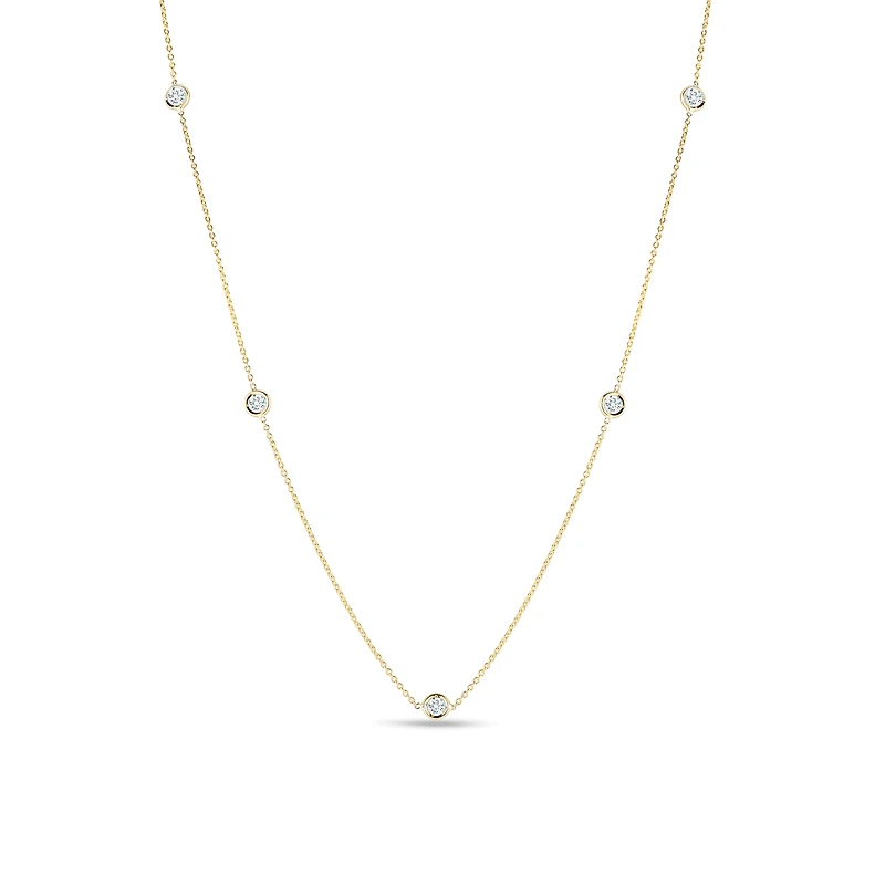 Diamonds by the Inch by Roberto Coin, with delicate chains and bezel set stones exude femininity' but layered they create a fresh look.